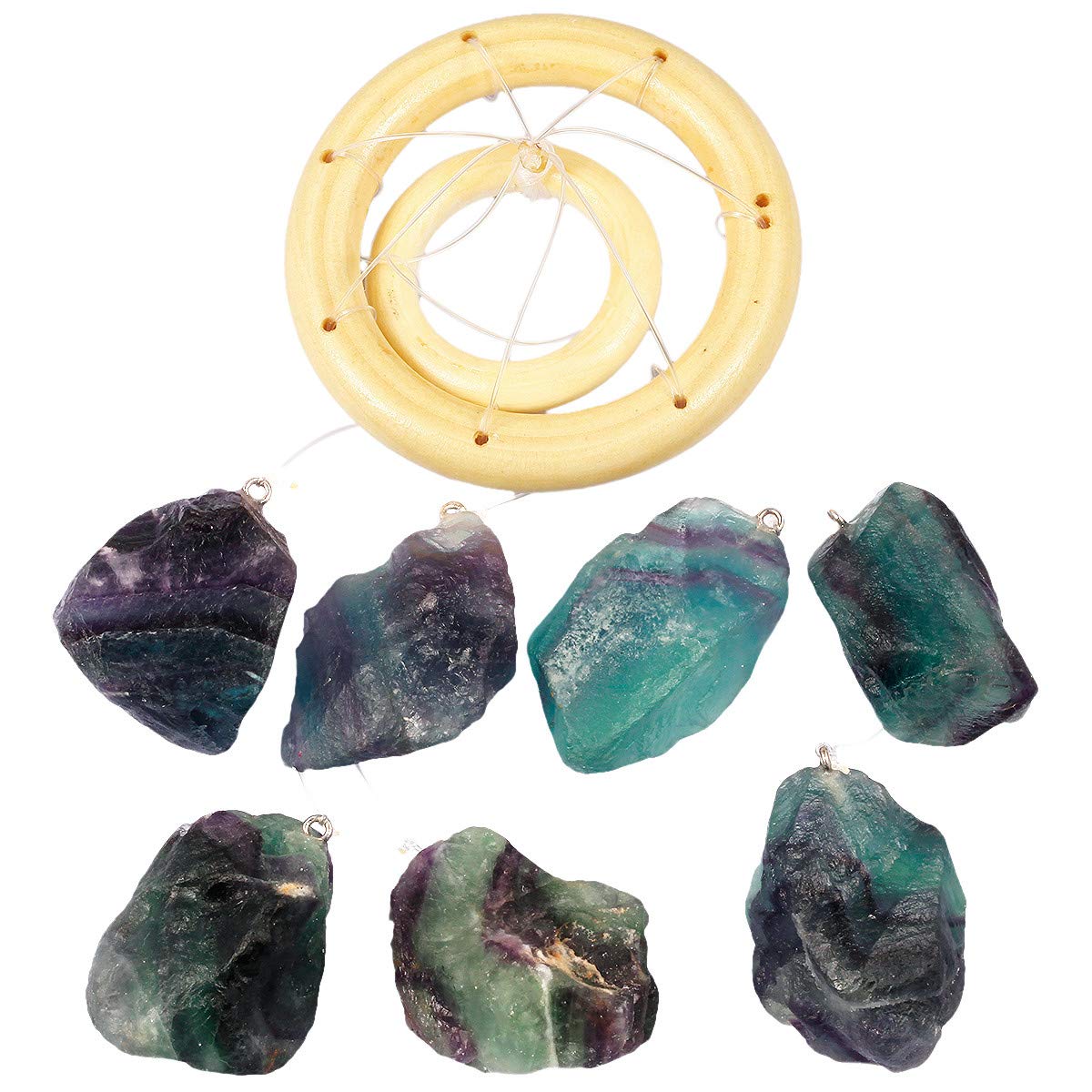 This gorgeous Purifying and Healing Raw Crystal Wind Chime is beautifully and simply constructed with vibrant natural stones, draping gracefully from a thin line which dangle from a wooden ring for hanging.
