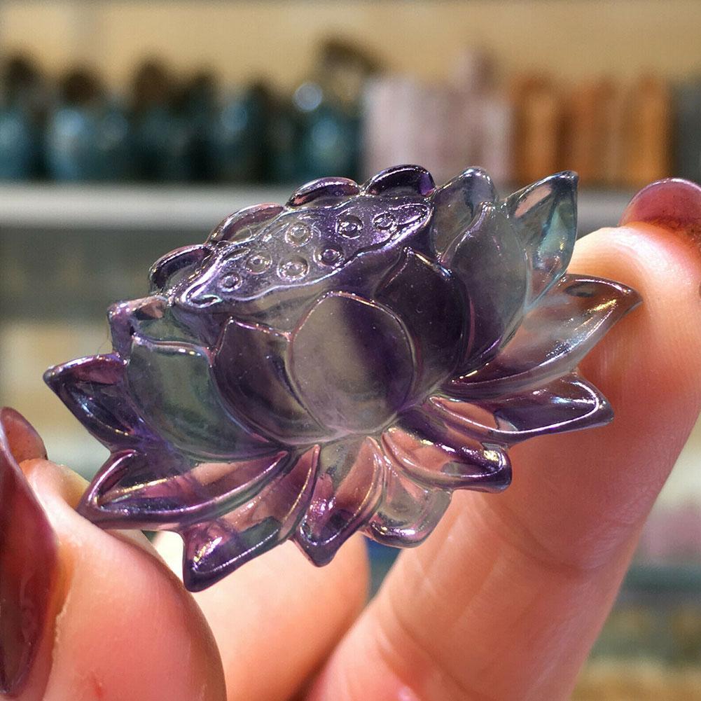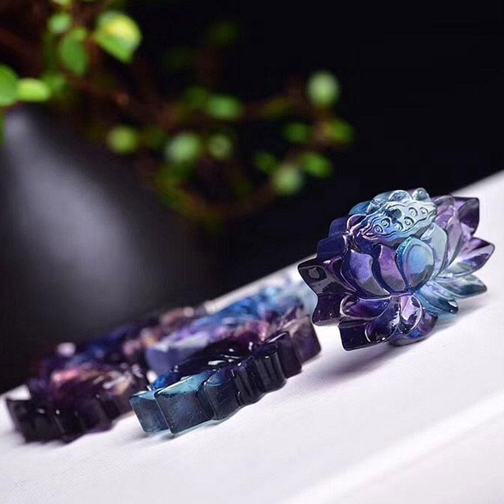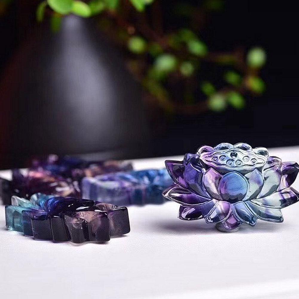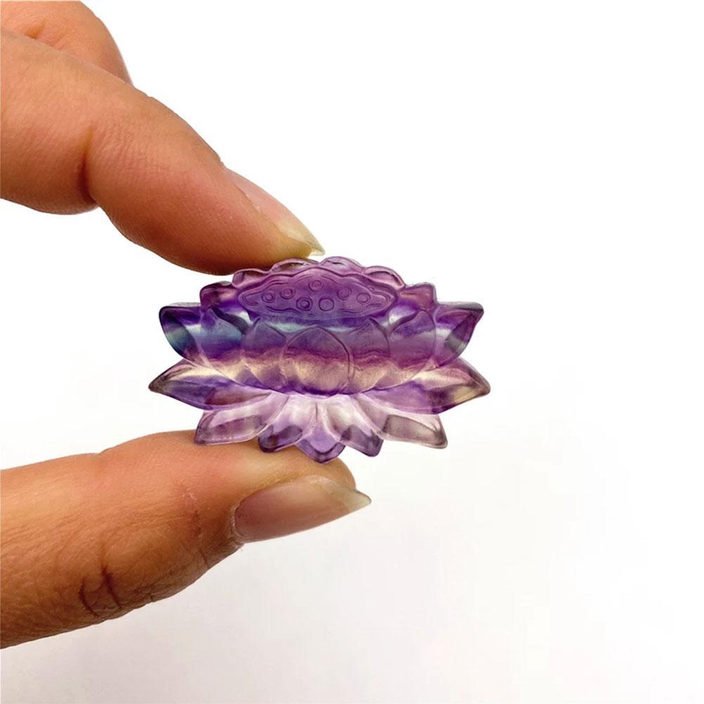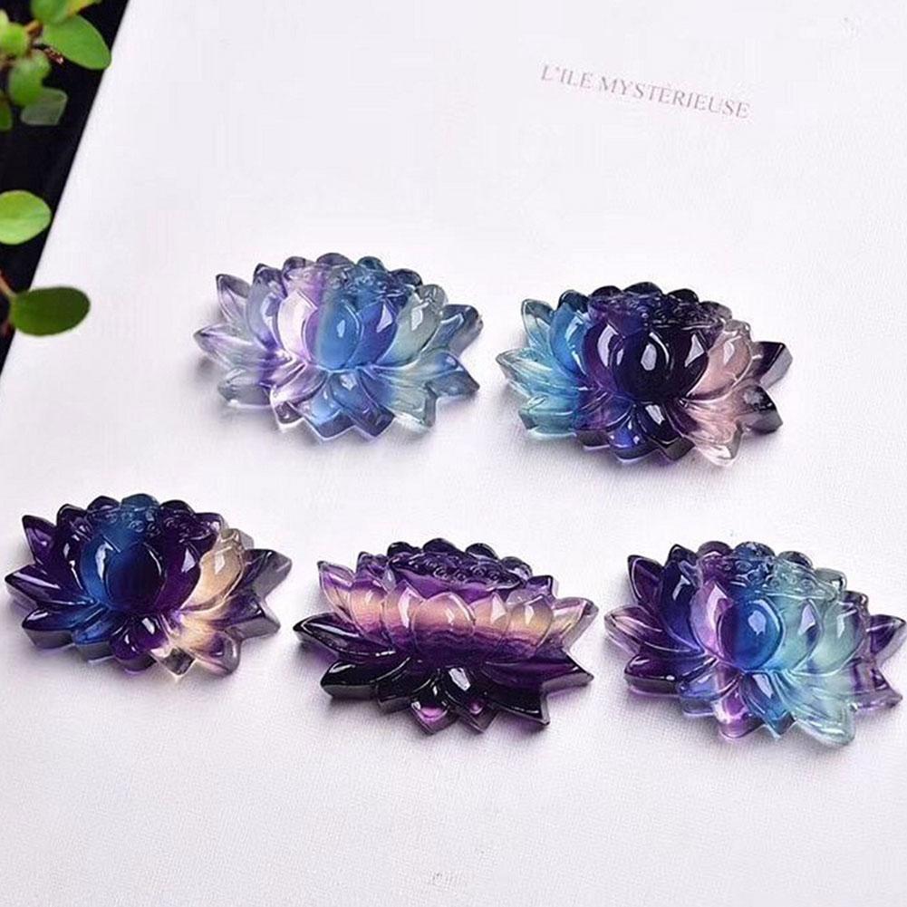 Bring the beauty and healing energy of the lotus flower into your home with this Rainbow Fluorite Lotus Flower.