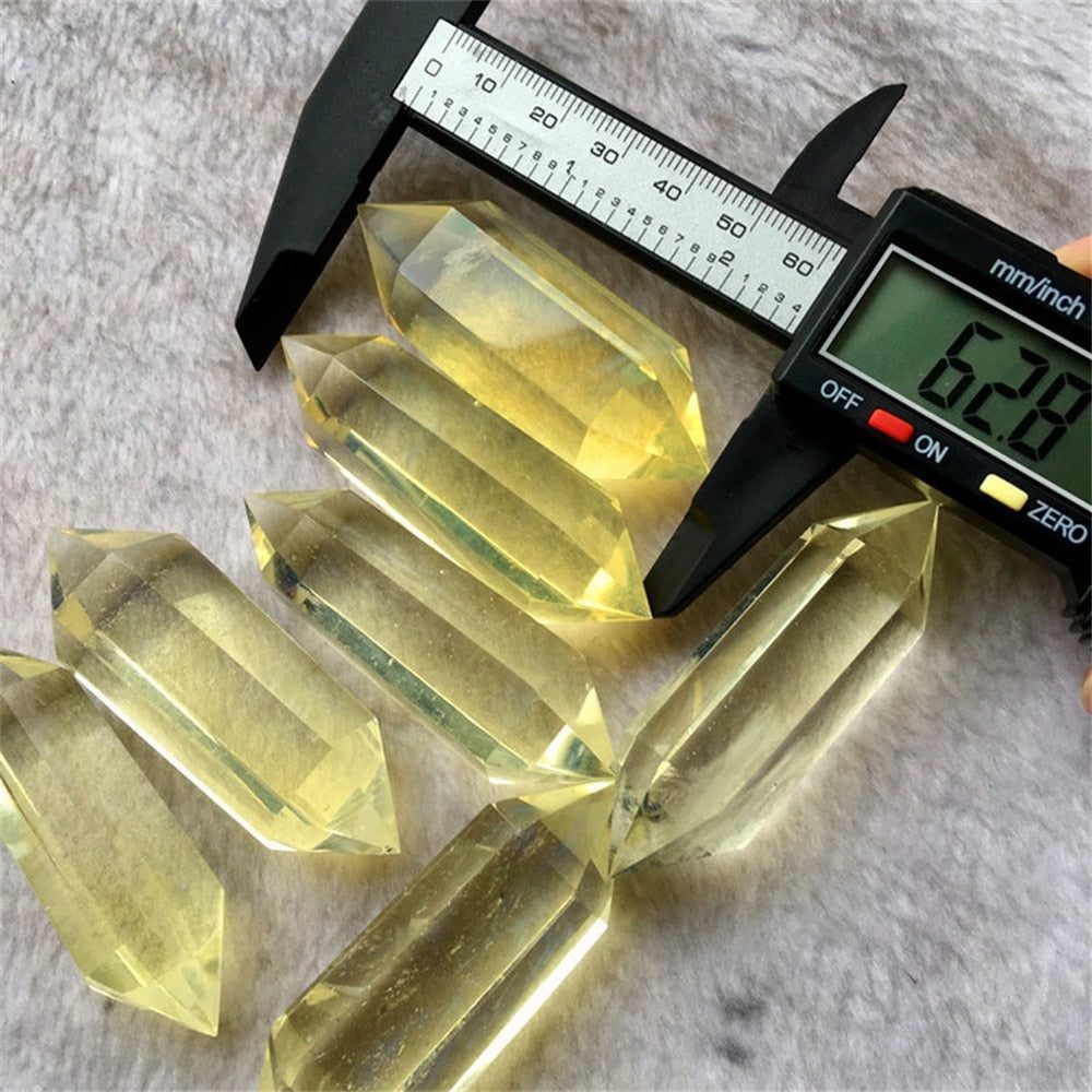This beautiful wand is made with natural citrine, a stone of abundance, joy, and success. The wand is about 50-65mm in size and is polished to a smooth finish. The wand's hexagonal shape is said to amplify its energy.
