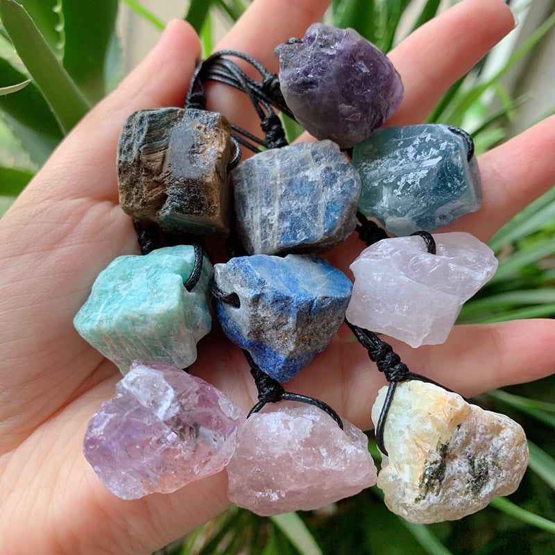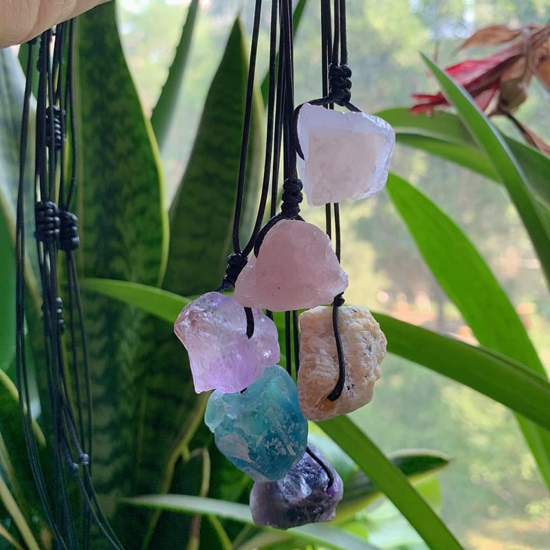 These Raw Energizing Stone Pendant Necklace are made with natural stones that are alive with wonderfully positive energies. They are a beautiful necklace with healing as an added bonus!