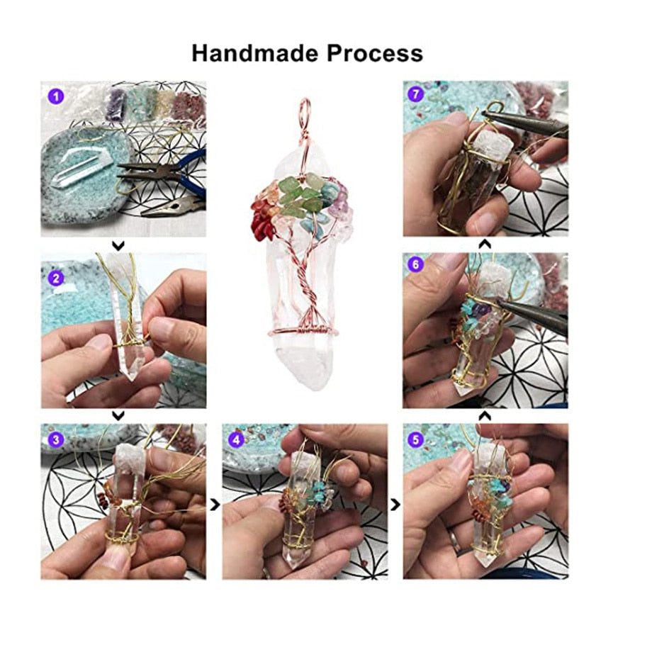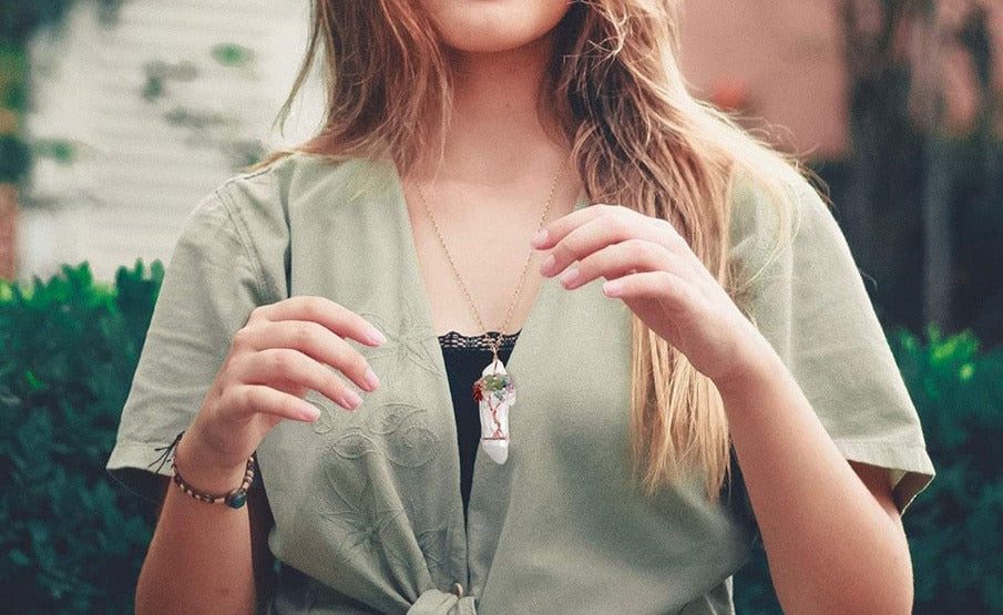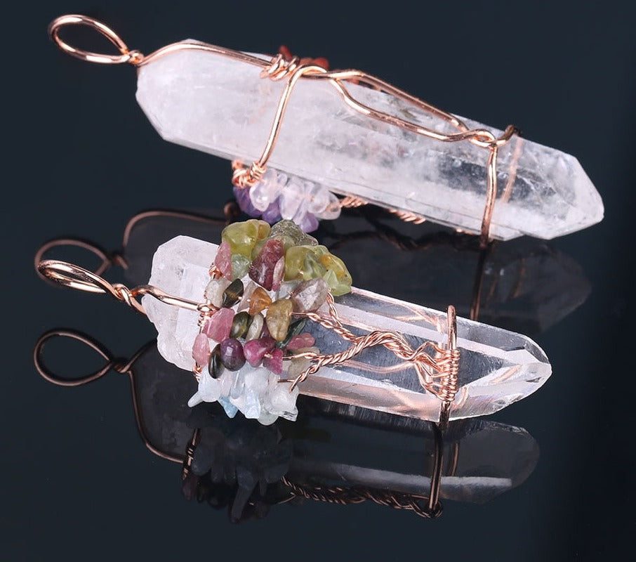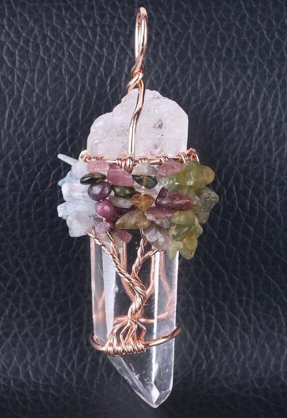 We, like the tree, begin our personal spiritual journey as a small seed that grows into the embodiment of higher consciousness. With that in mind, we created a new crystal pendant to remind us of our connection to all that is, as well as the joy and unconditional love that we experience when we become a conduit of this Divine exchange.
