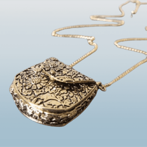 Get this bag necklace and place small pieces that you would want to keep close to your heart.