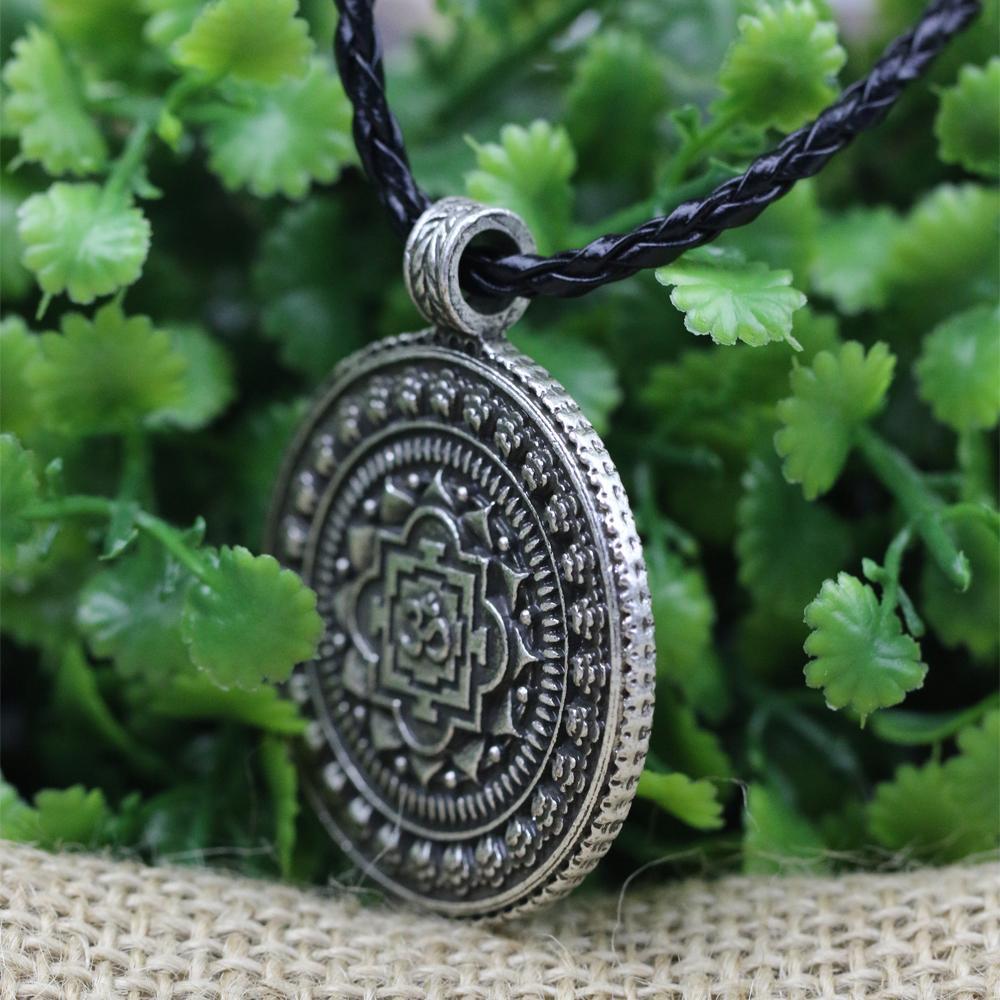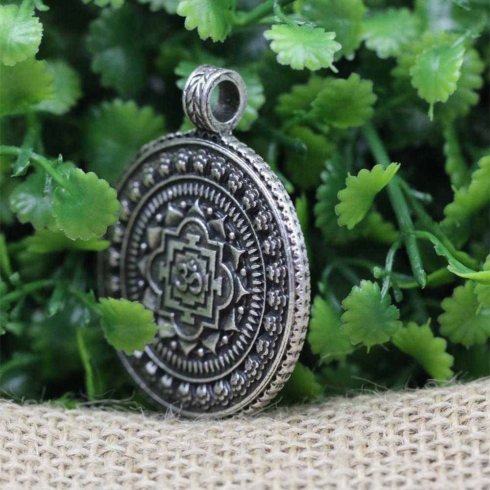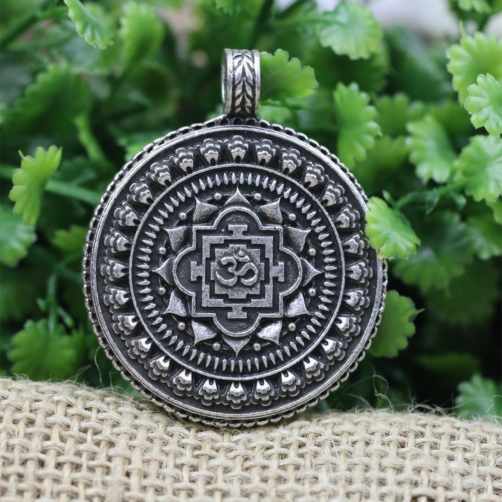 This magnificent piece features the om symbol placed inside a Bhupura which is the box-like form representing the temple that marks the finite space in which the yantra is created. It is in the heart of a beautiful and intricate lotus mandala.