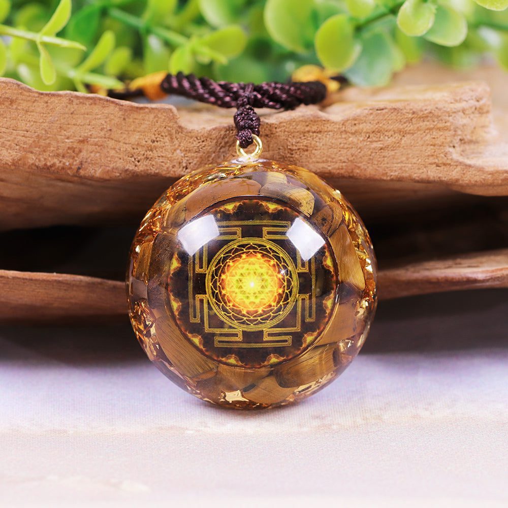 Our Sri Yantra Orgone Pendant Necklace represents the timeless creative principle of the universe. The three-dimensional form of the Sri Yantra, dating back to 3000 B.C., is a multi-pyramid grid signifying unlimited abundance and positive powers, and helps to clear negative energy.
