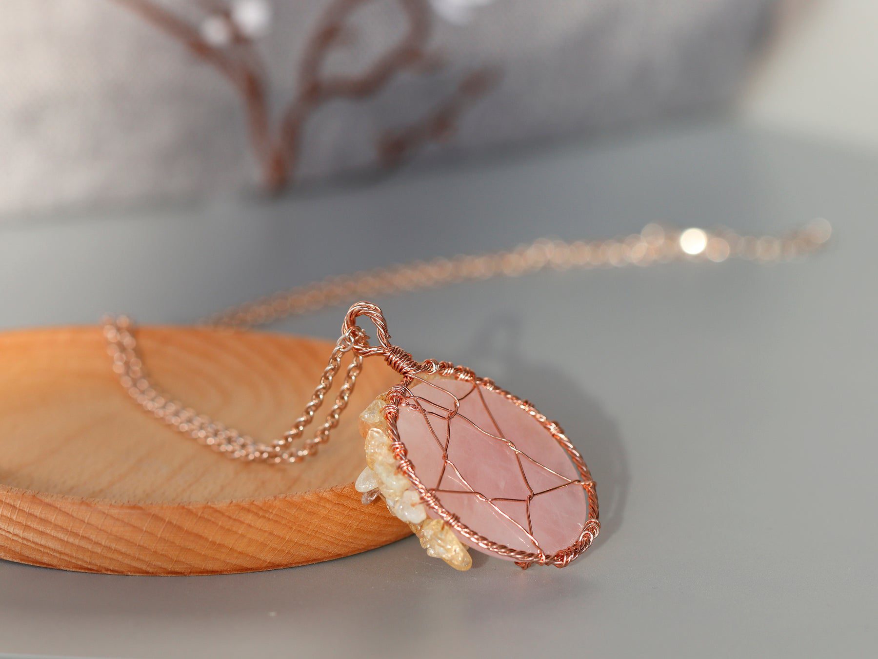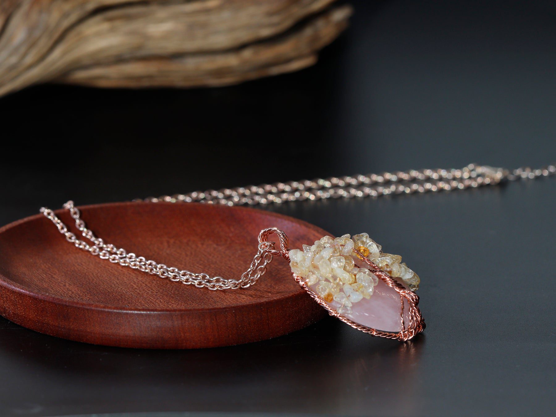 Crafted with genuine rose quartz and citrine gemstones, this necklace is not only a beautiful addition to any jewelry collection but also a powerful tool for attracting positive energy and success.