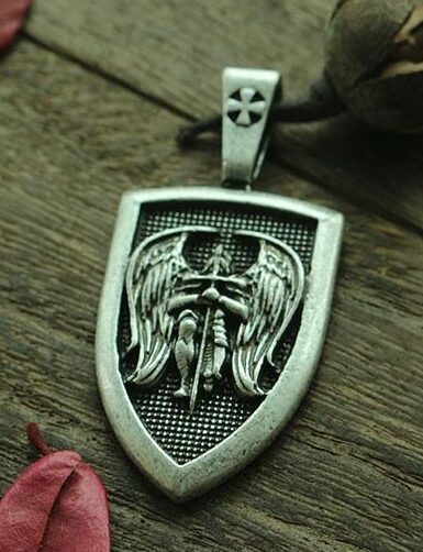 The Archangel Saint Michael is the known leader of all angels and of the army of God. The title "Archangel" means, that he is above all the others in rank and regarded by some as "The Prince of the Seraphim". His image throughout history has been an angel donning armor, shield, and a double edge sword that stands for Truth and Justice, always ready to protect good from evil.