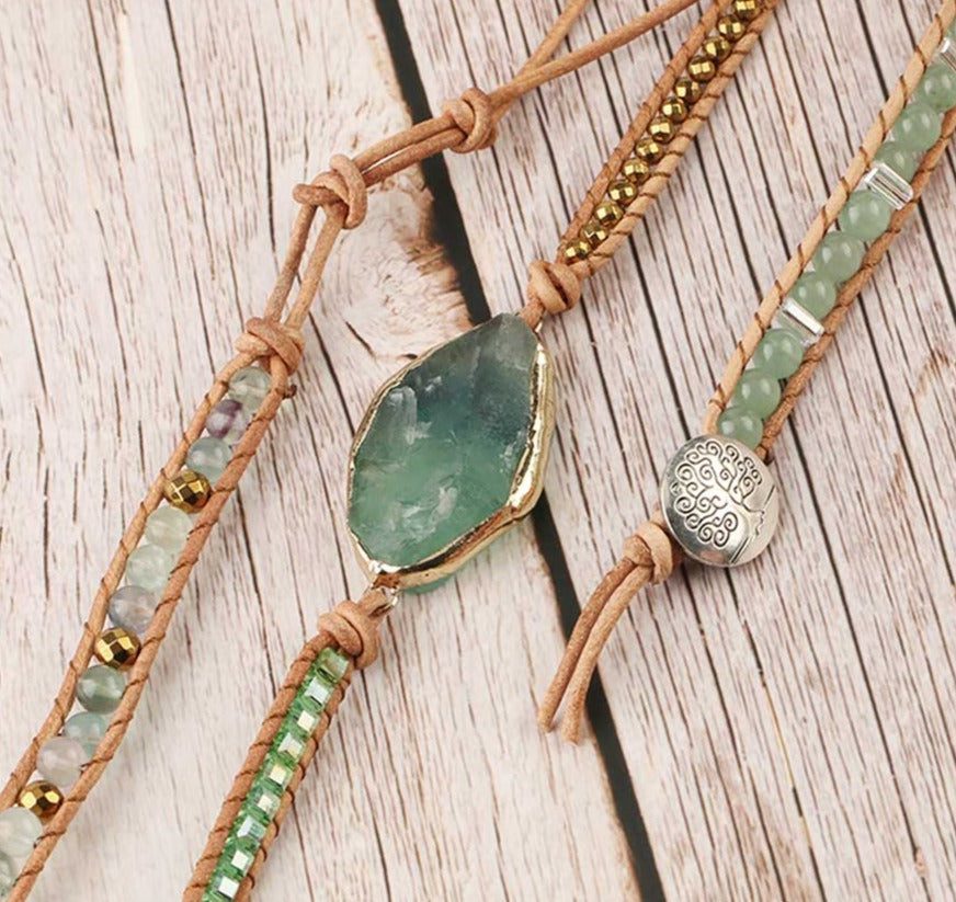 Materials:Fluorite , Green Aventurine,Multilayer, Leather Cord