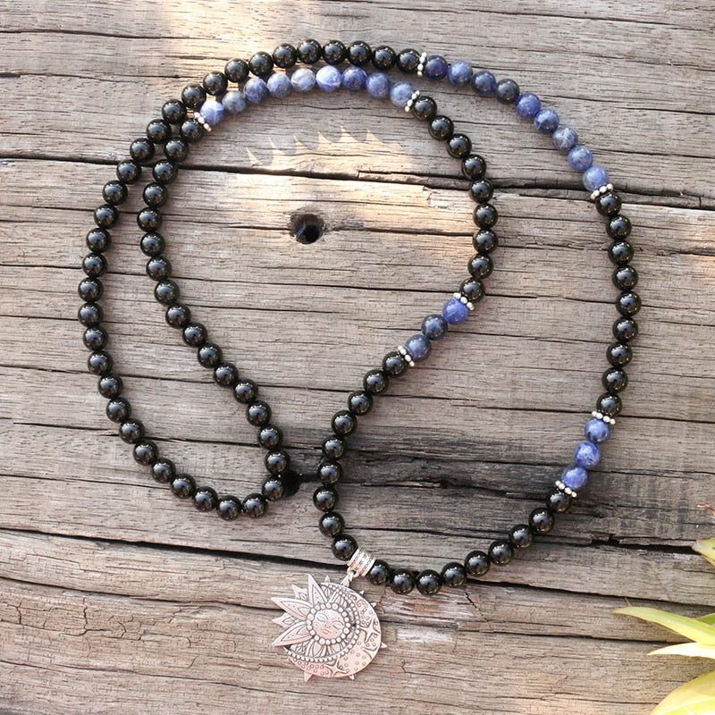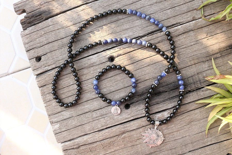 If you are looking for a way to bring peace and tranquility into your life, then the Sodalite and Black Onyx Mala Set is the perfect choice for you.