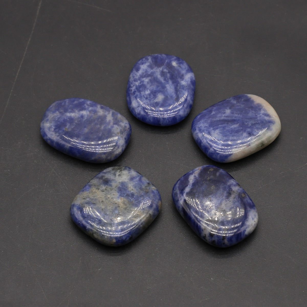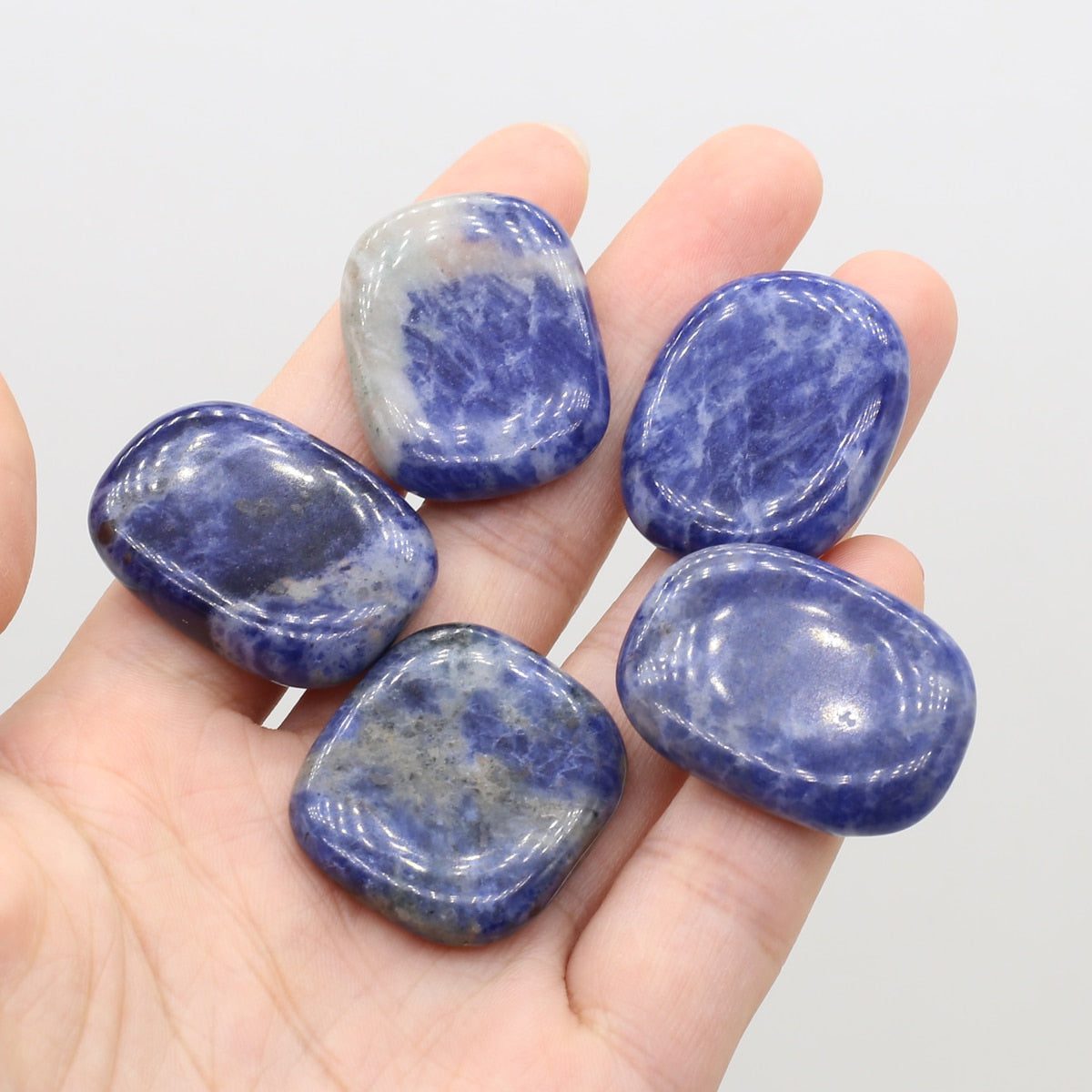 Connect to ancient wisdom with this Sodalite Intuitive Oval Palm Stone Set!