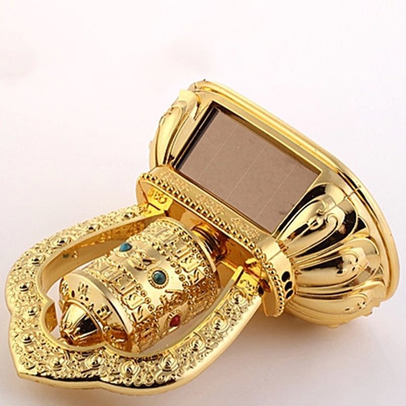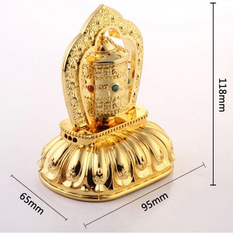 This Solar Energy Spinning Tibetan Prayer Wheel rotates under sunlight without battery.Padmapani,a bodhisattva who embodies the compassion of all Buddhas, scriptures are written in the prayer wheel, which is believed by Tibetan that when the wheel rotates,