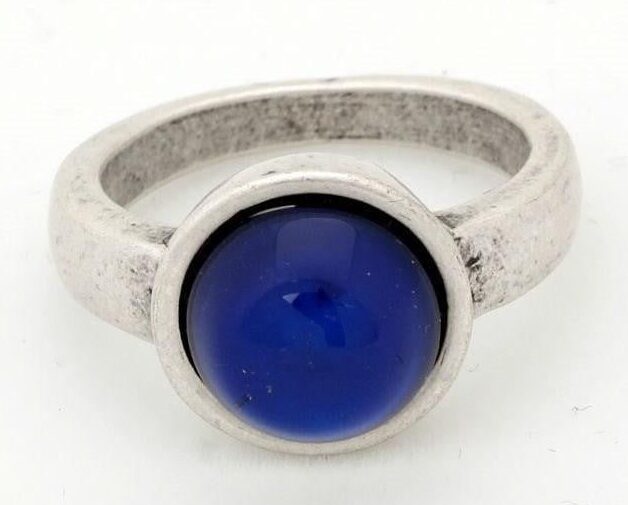 The ring contains thermotropic liquid crystals inside the stone. These liquid crystals are able to show different colors at different temperatures so as your body reacts to your mood, your emotional state will be revealed by the corresponding colors of the ring.