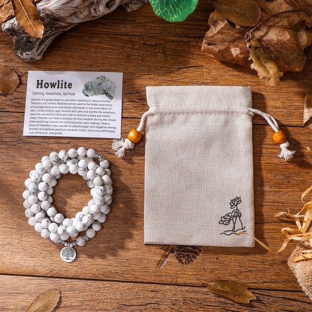 Connect with your inner peace and tranquility with the Spiritual Treasure Howlite Mala.