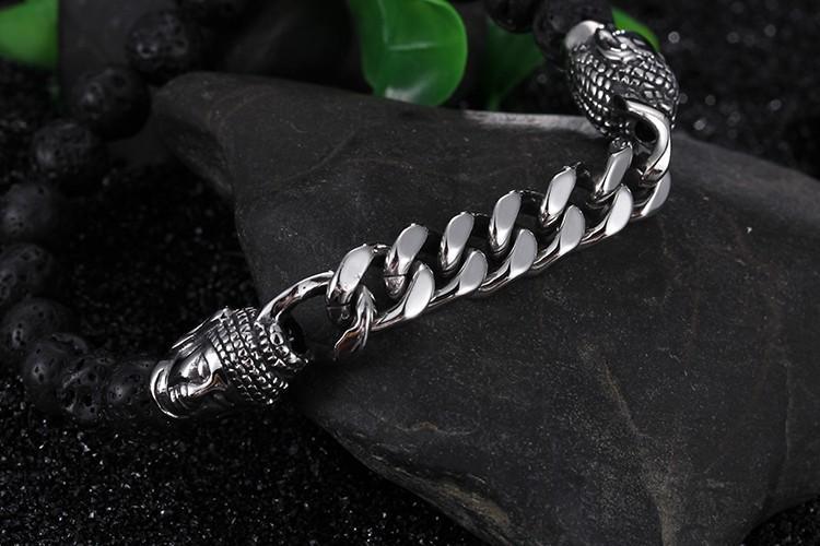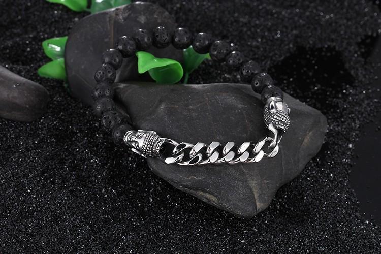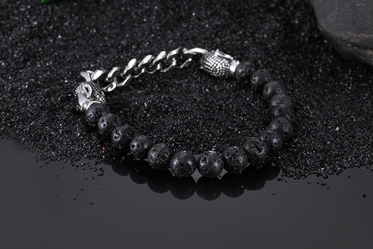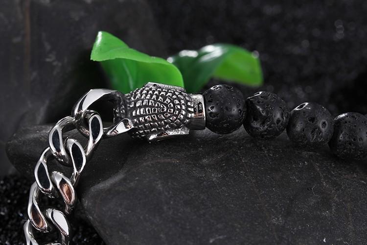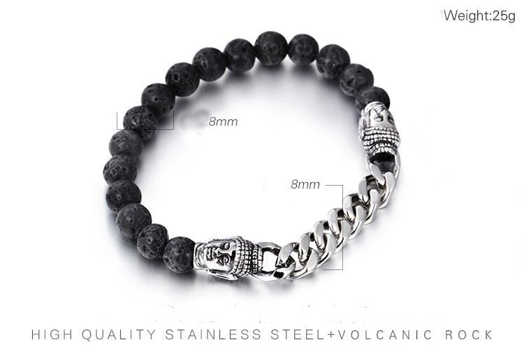 This bracelet is made with natural stone beads of Lava Rock handpicked by experts to ensure the highest quality of this product. Exquisitely crafted into one of the most well known icons of the world, this symbolic piece features beautiful Buddha head charms linked together by a stainless steel chain. Each charm is