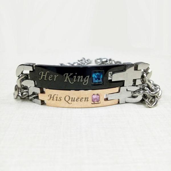 This Stainless Steel Couple Bracelets are engraved with the cutest pet names you can have. 'His Queen' and 'Her King' is a timeless fairy tale pet name for couples everywhere because its the best word that describes your partner in your beautiful world that is your kingdom of love.