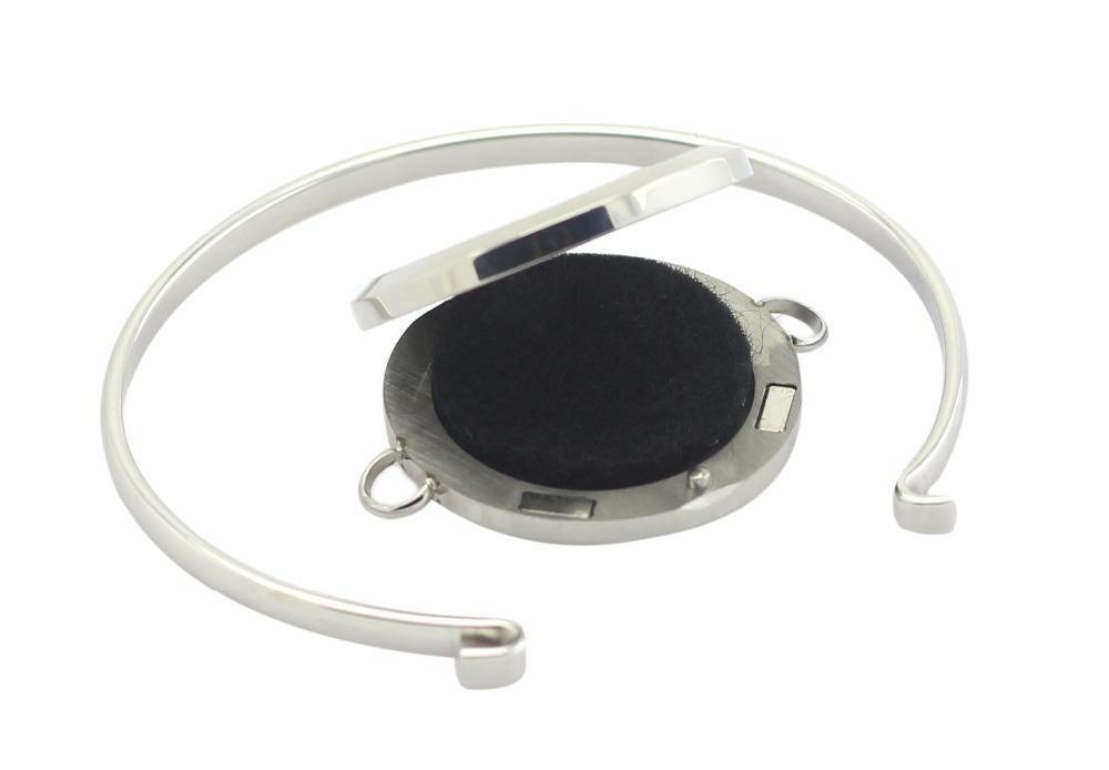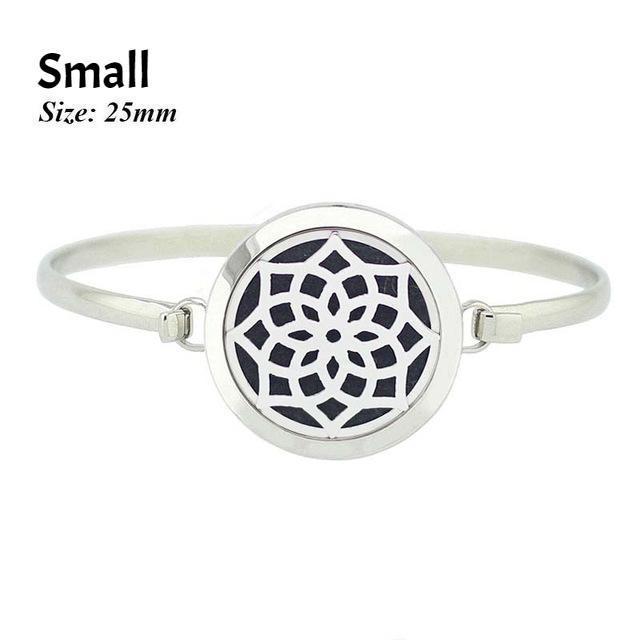 This Stainless Steel Essential Oil Aromatherapy Bangle is made with high quality 316 stainless steel. Exquisitely crafted with your choice of a beautiful outline of a lotus, om symbol, tree of life, or mandala, this symbolic piece lets you enjoy the benefits of your essential oils on the go.