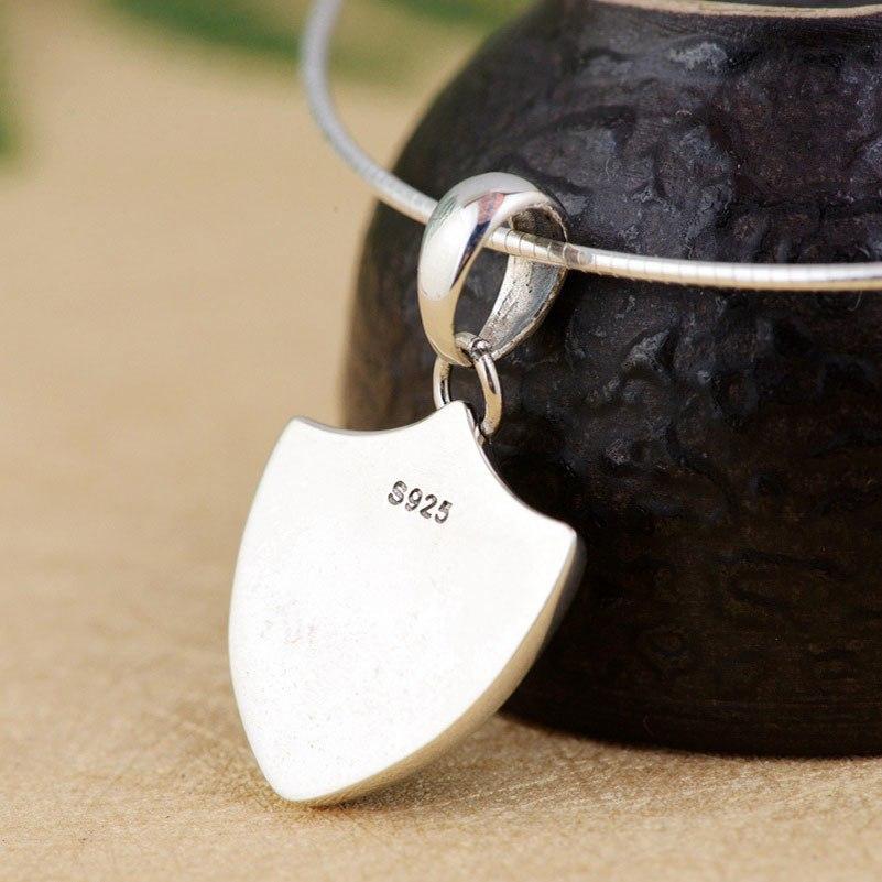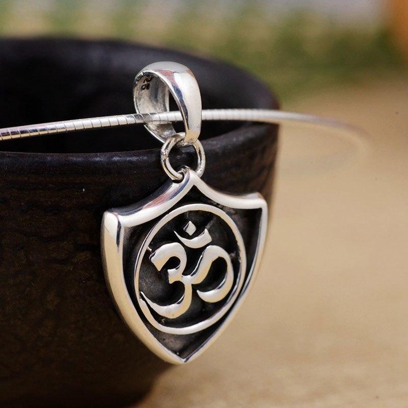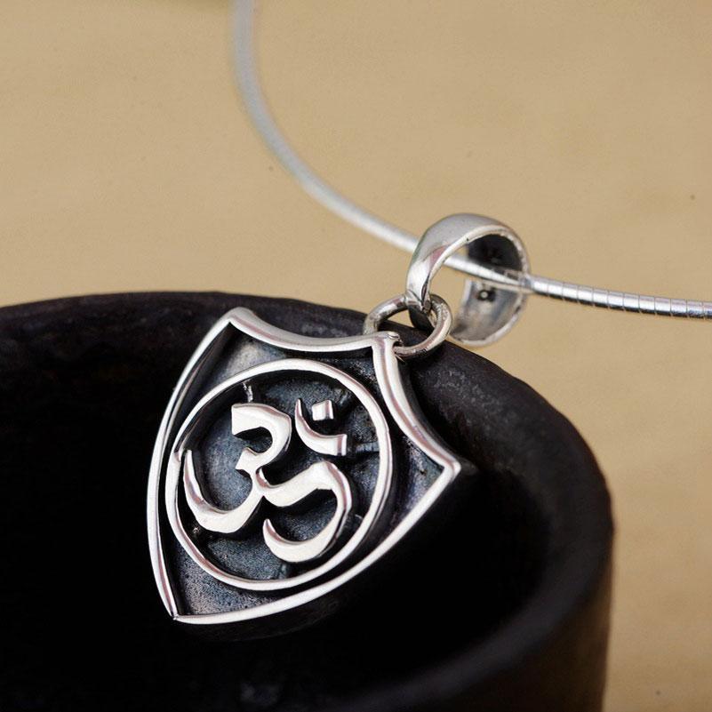 Exquisitely crafted to form one of the most well known symbols in the world, the Om symbol is inside a perfect circle resting inside a three pointed shield. This beautiful piece is made with the finest 925 Sterling Silver.