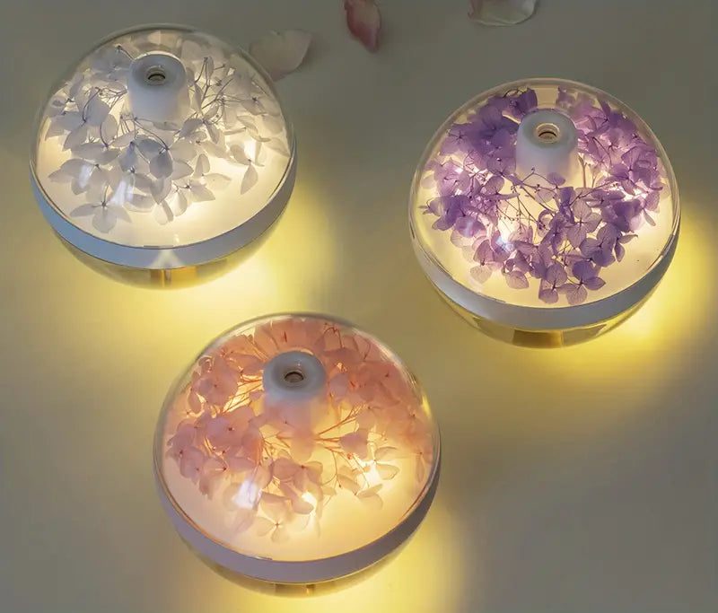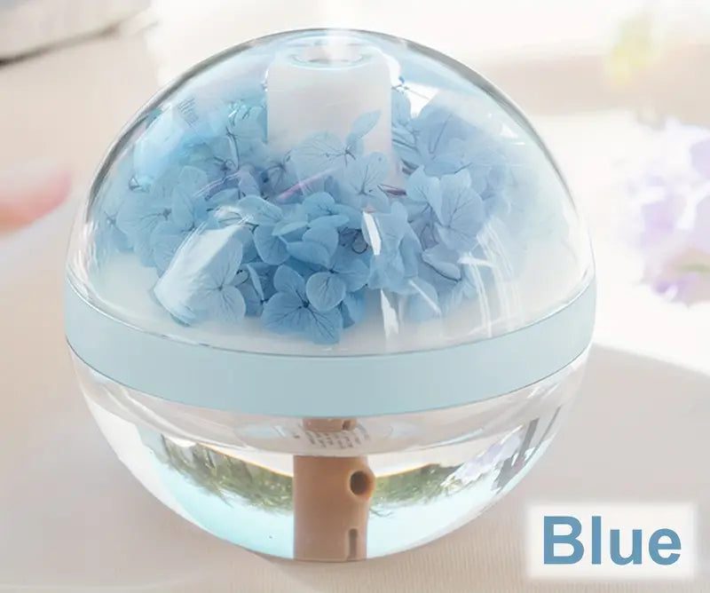 Enhance your living space with the Serenity Flower Mist Humidifier, an ultrasonic humidifier designed to promote wellness and tranquility. Featuring a unique perpetual flower design embedded with variations of pink, purple, and light blue, this humidifier adds a touch of elegance and positive energy to any room.