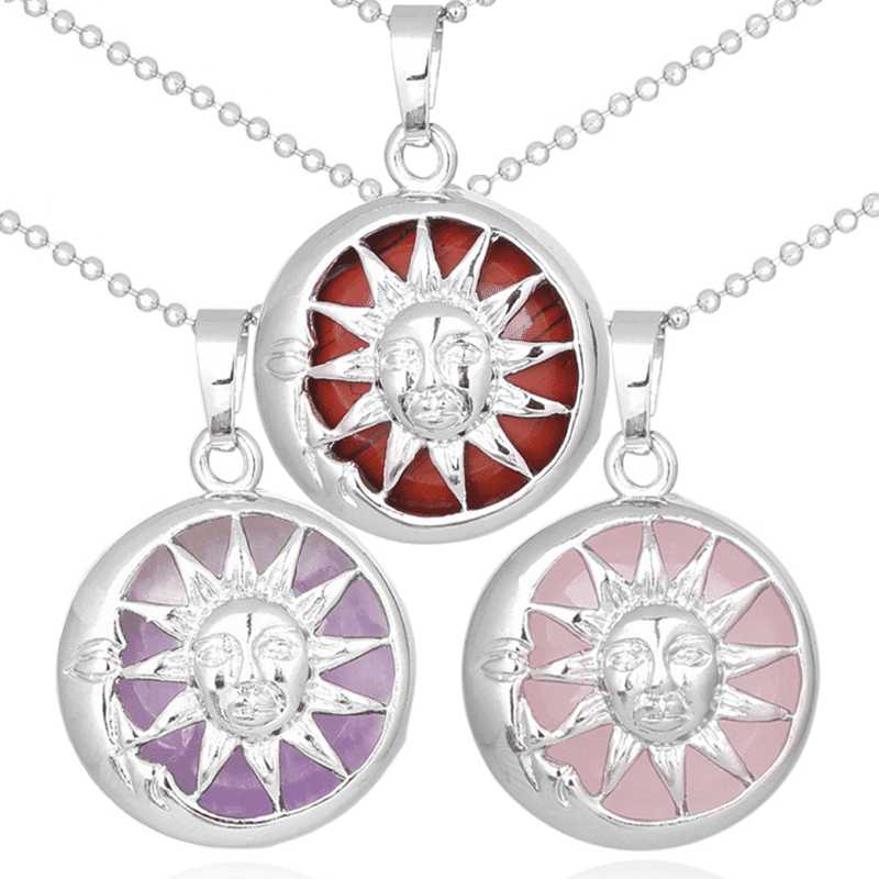 Designed to perfection, this Sun And Moon Healing Stone Openwork Necklace brings harmony and balance to the body and spirit. Each necklace is made with high quality metal alloy masterfully made into a beautiful and intricate sun and moon design that vibrates a truly mystic energy.