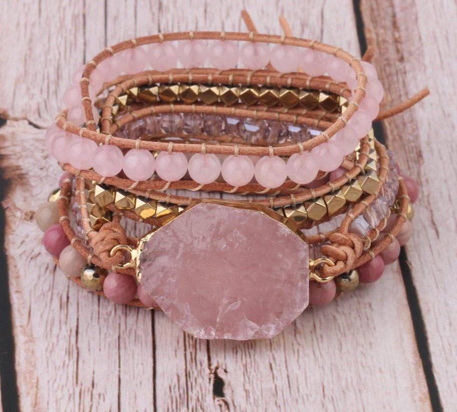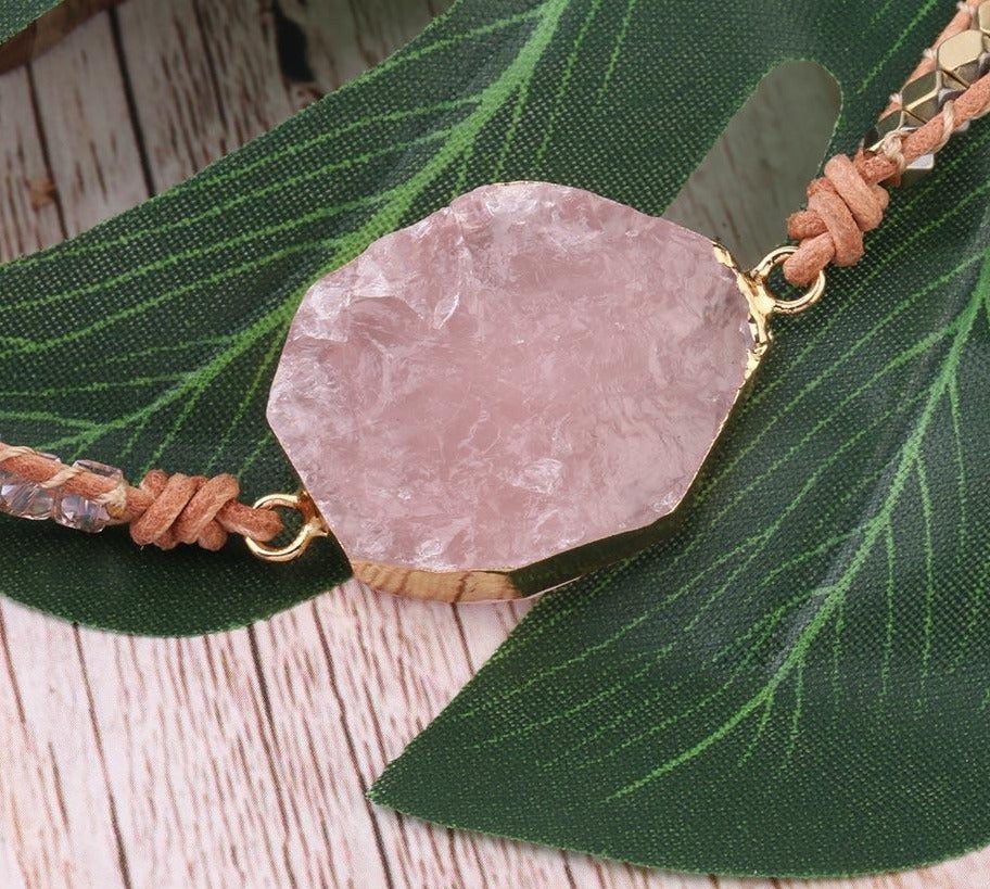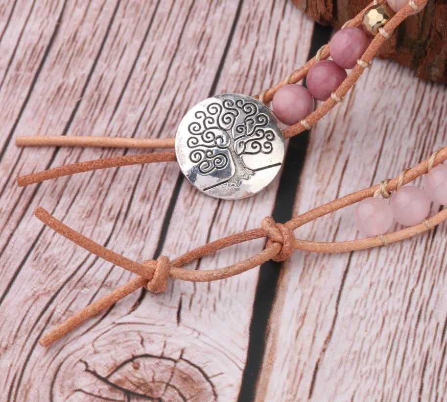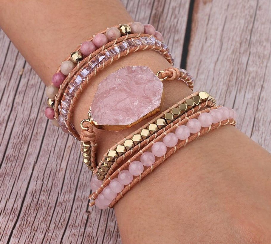 Materials:Rose Quartz, Rhodonite, PU Leather, Zinc Alloy