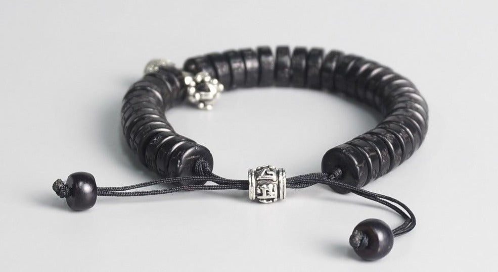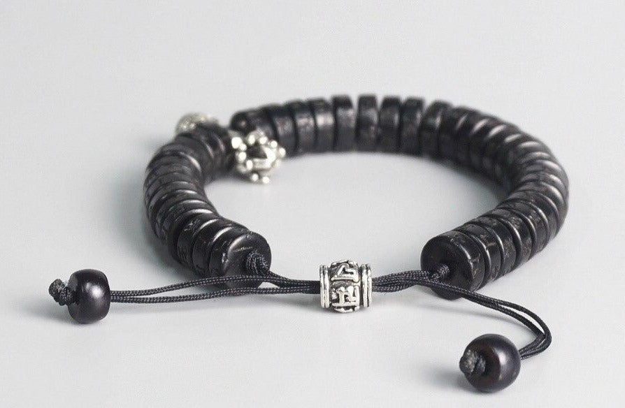 This dazzling and natural bracelet is made of Coconut Shell with a high-quality, white copper Vajra Charm for balance and strength. It emits universal mindfulness, harmony, modesty, acceptance, and universal love.