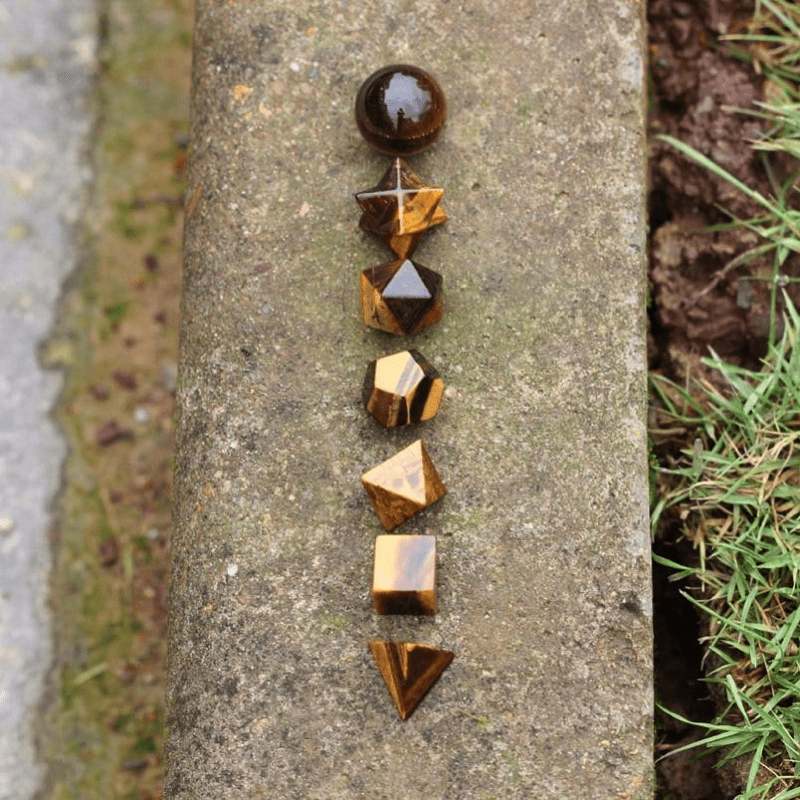 Tiger Eye Platonic Solids Sacred Geometry Set