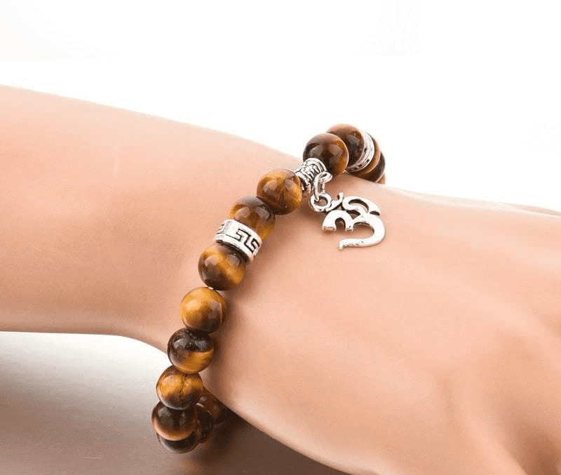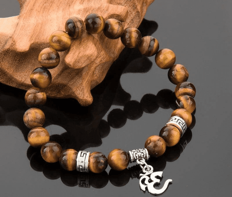 This Tiger Eye Stone Om Bracelet is handmade with natural Tiger Eye stone beads...