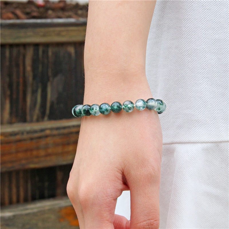 Wear this Tranquil Forest Moss Agate Bracelet to help illuminate the beauty you have within you and learn to love your strengths and appreciate your place in life.
