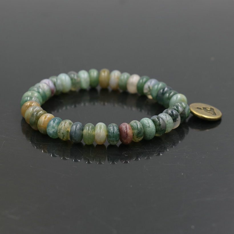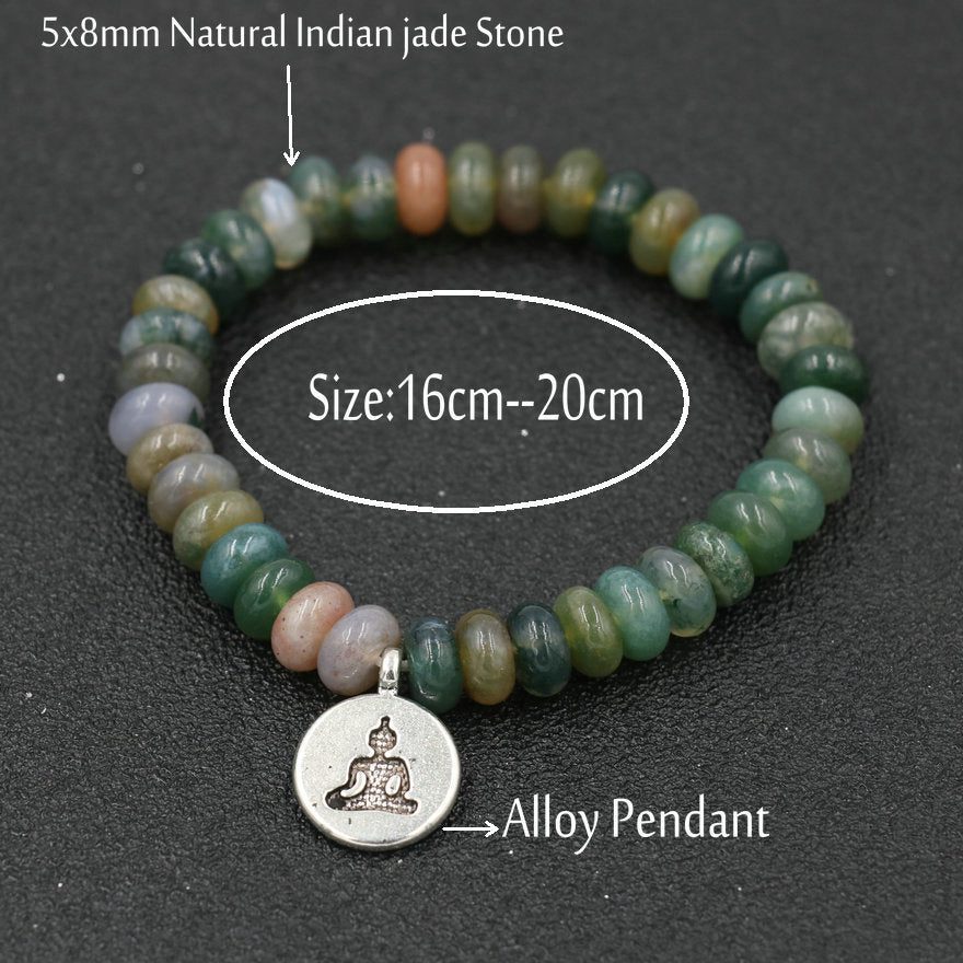 This beautiful bracelet is made with natural jasper, a stone of protection and grounding. The beads are about 5x8mm in size and are strung on an elastic cord. The bracelet also features a small Buddha charm, which is a symbol of peace and tranquility.