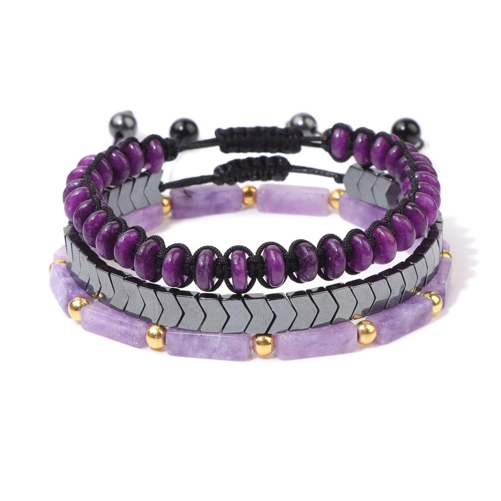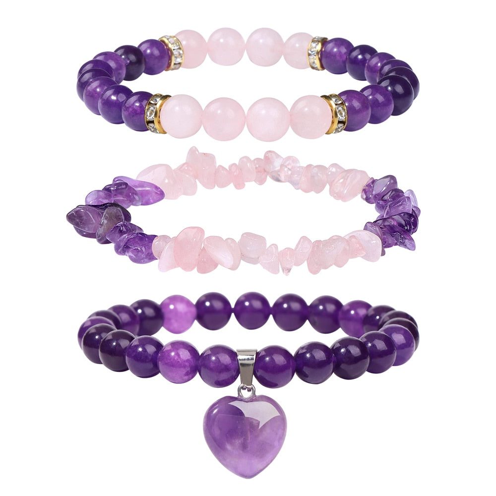 Trio of Healing Amethyst Bracelet Set