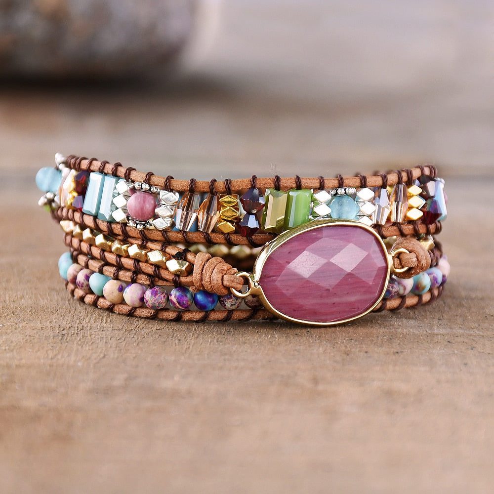 Explore and strengthen your connection with you inner self through this Aksamada Rhodochrosite Wrap Bracelet, while working toward deepening meditation and attuning to greater love energies.