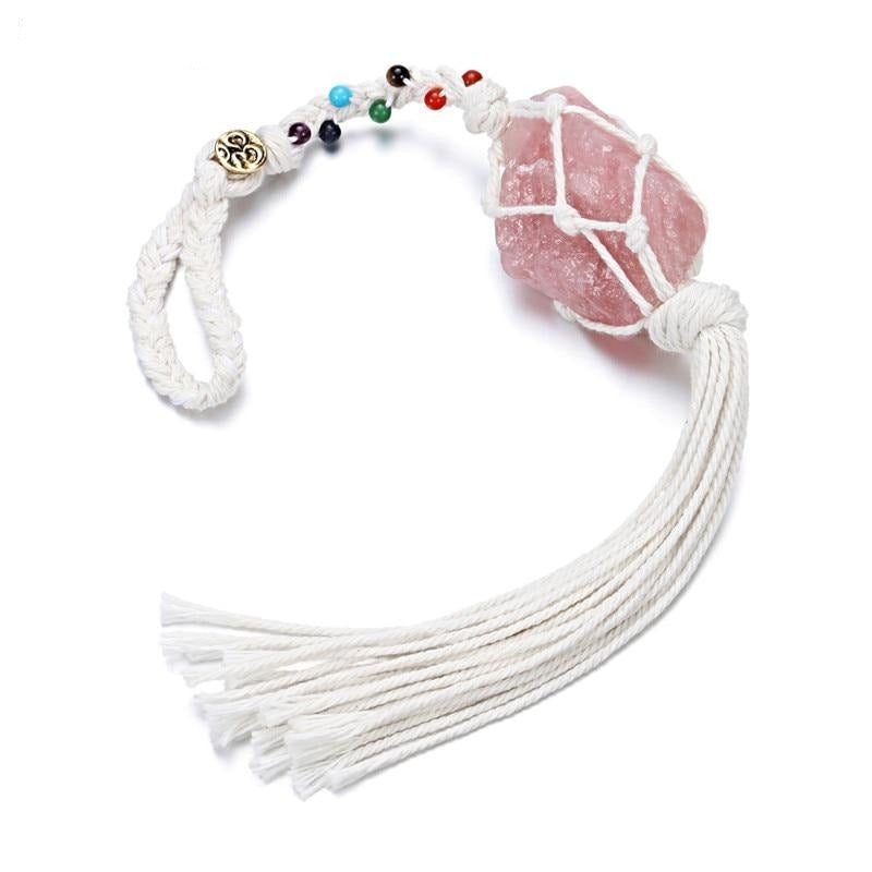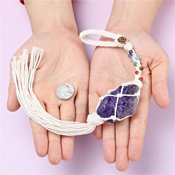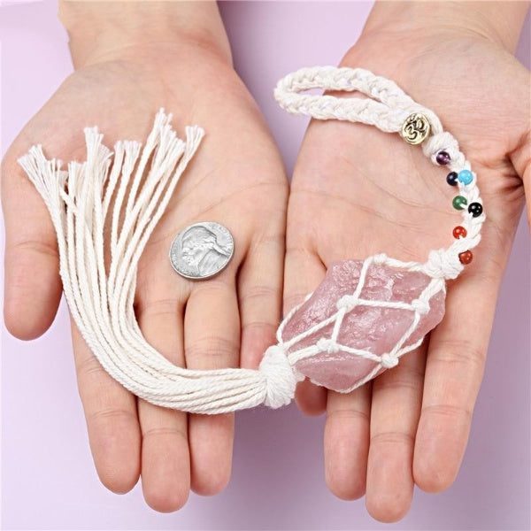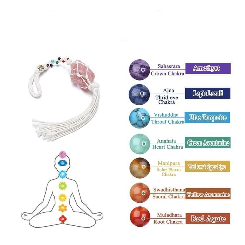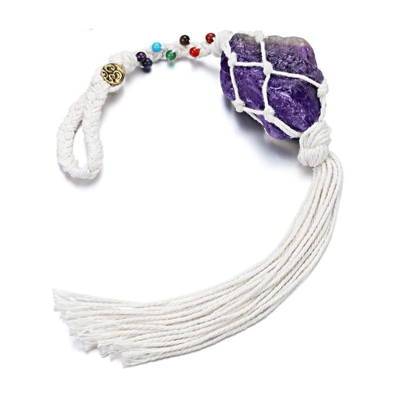 Material:Rose Quartz, Amethyst, Rope, Chakra Beads, Zinc Alloy