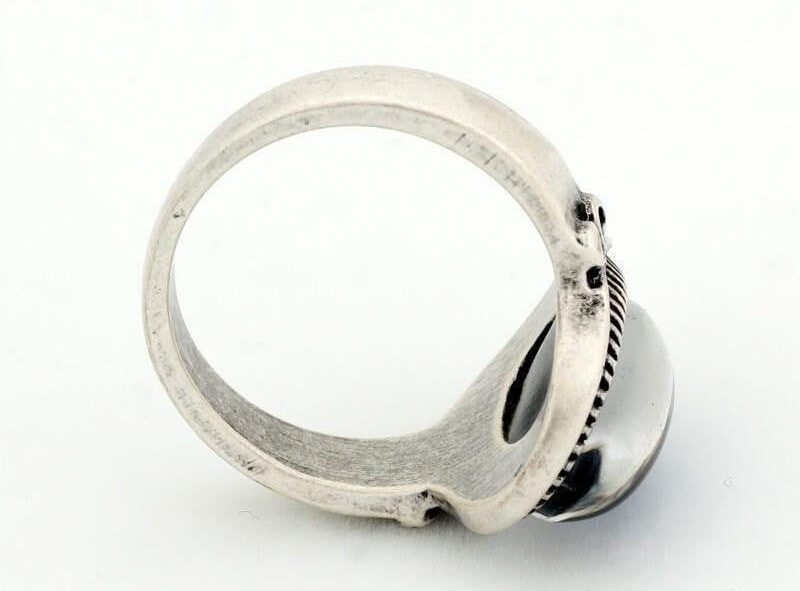 This mood ring is embellished with intricate design and tones of black making its appearance create a nostalgic '70s vibe! A beautiful piece to add to your collection and to accentuate that elegant dress!