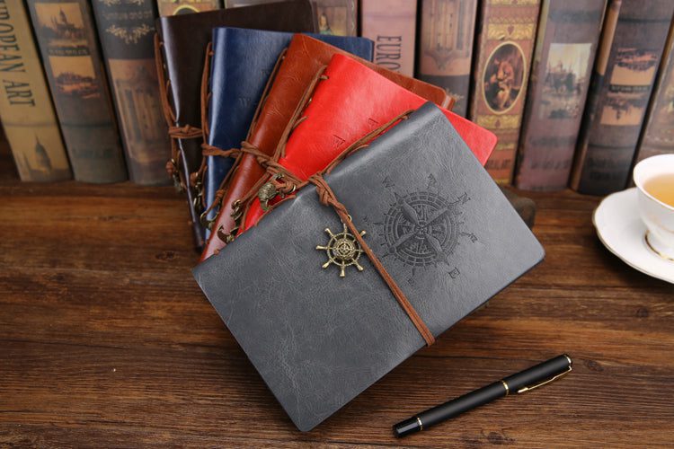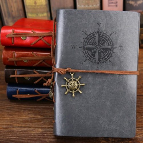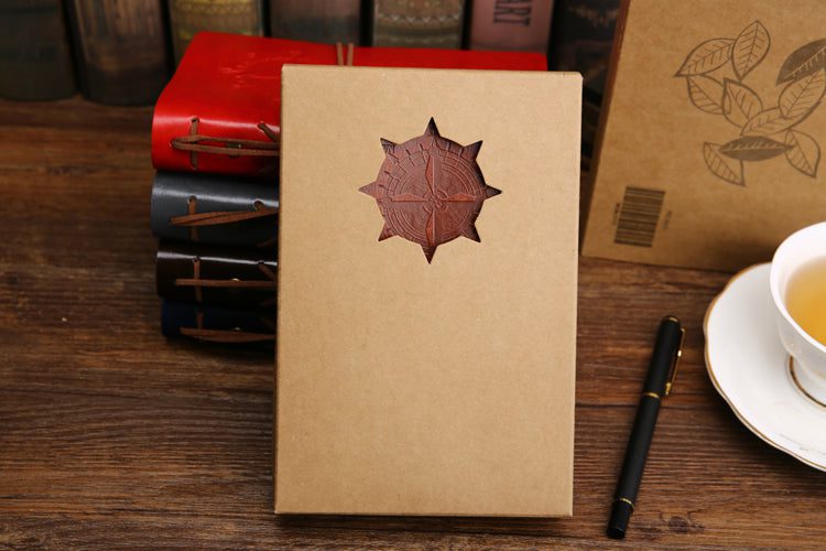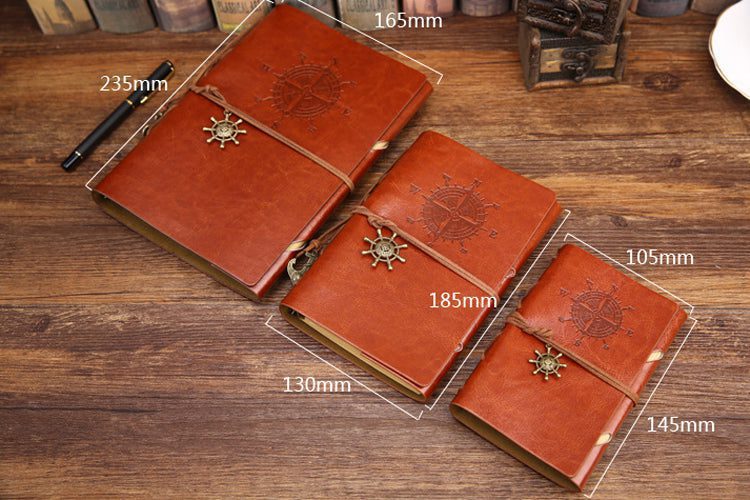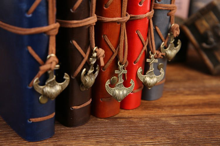Featuring a soft leather cover with a beautiful embossed compass that can be secured shut by a leather rope wrap embellished with antique toned charms so your writings are beautifully well covered. The pages have a parchment color to complete the vintage look and have no lines letting you maximize your space for your thoughts and scribbles.