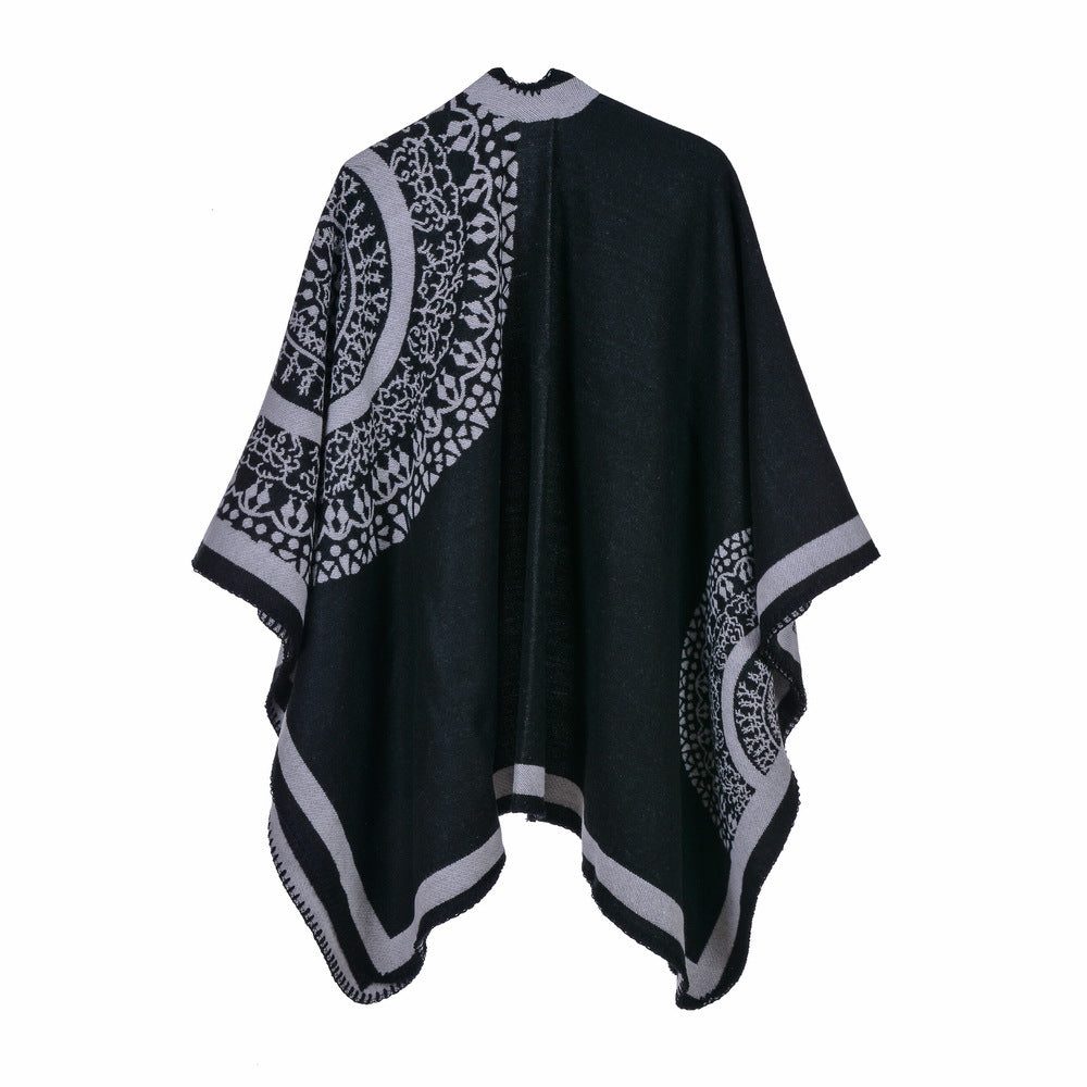 Whether you're out on the town, exploring the city or just curling up on the couch to get comfortable, this Warm and Cozy Geometric Poncho is the perfect apparel for you!