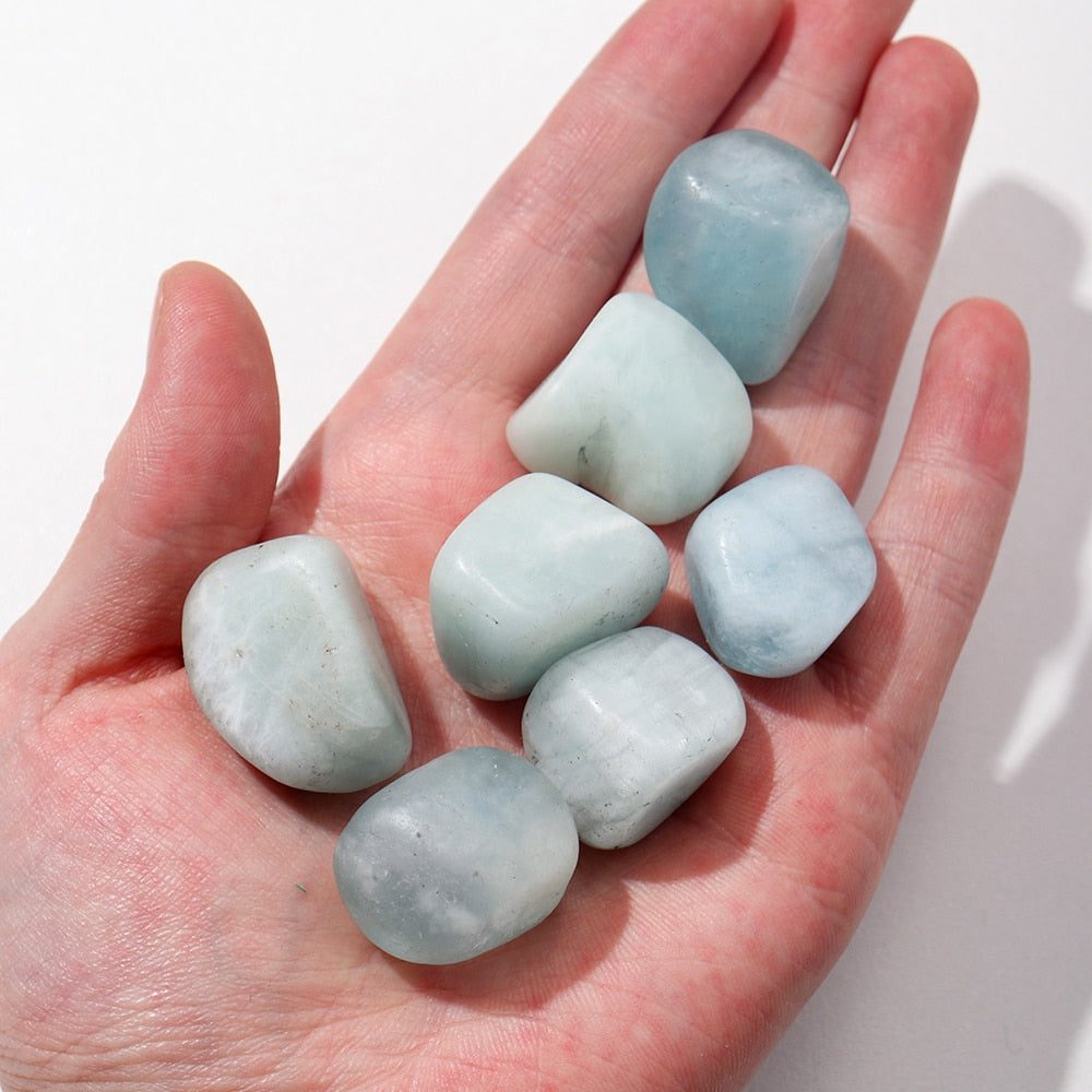 Activate your throat chakra and achieve inner harmony through these Waves of Calm Aquamarine Pocket Stones!