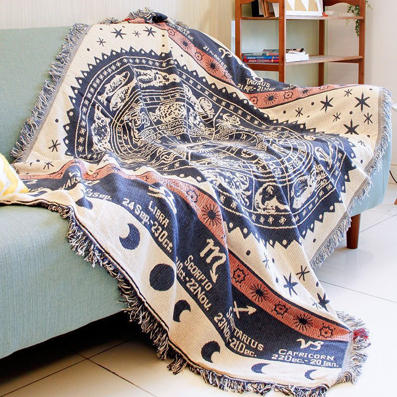 This Wheel of the Zodiac Bedspread will bring comfort and a touch of inspired life to any bed, sofa or chair.