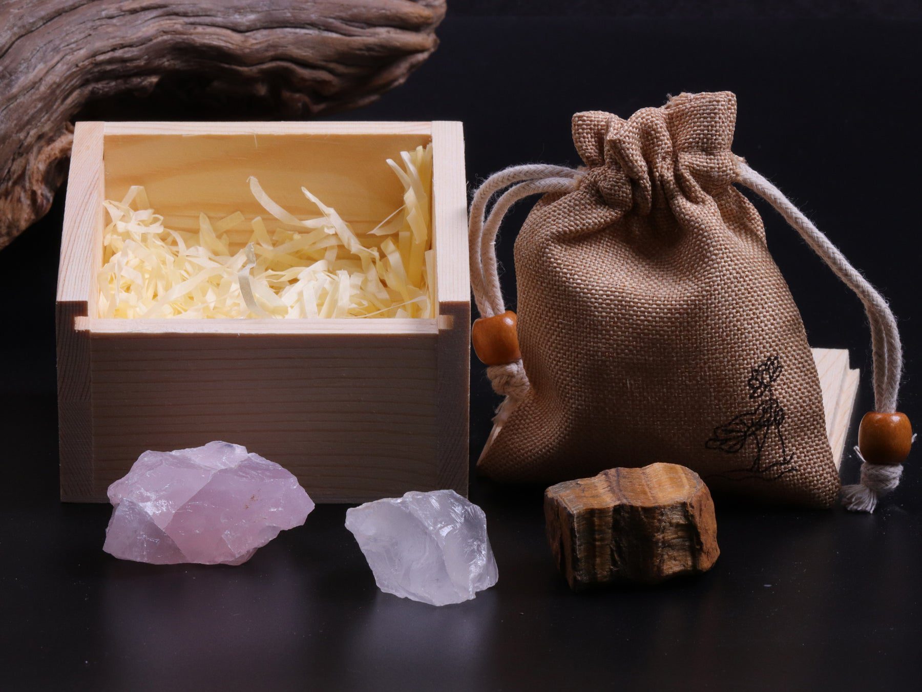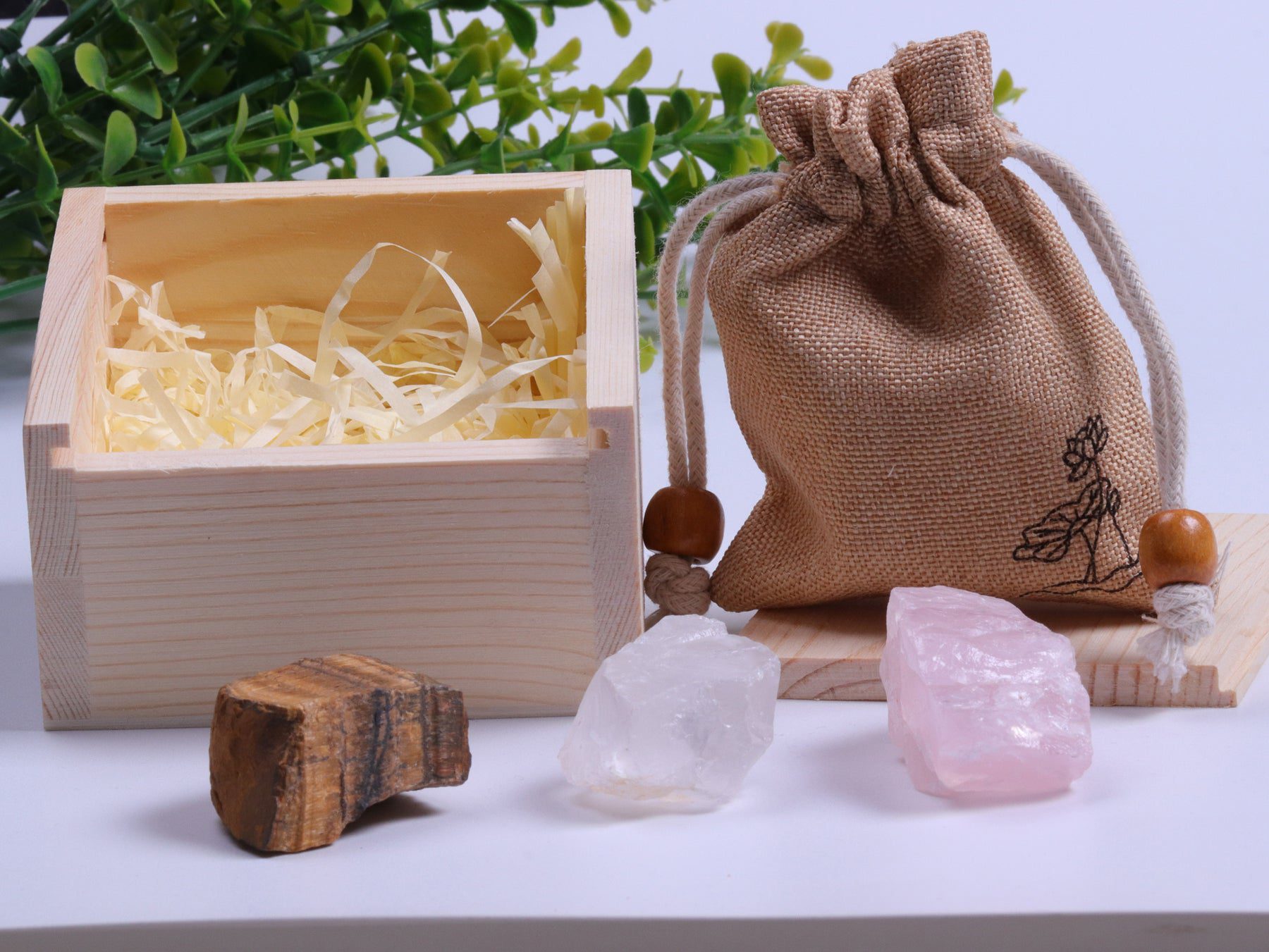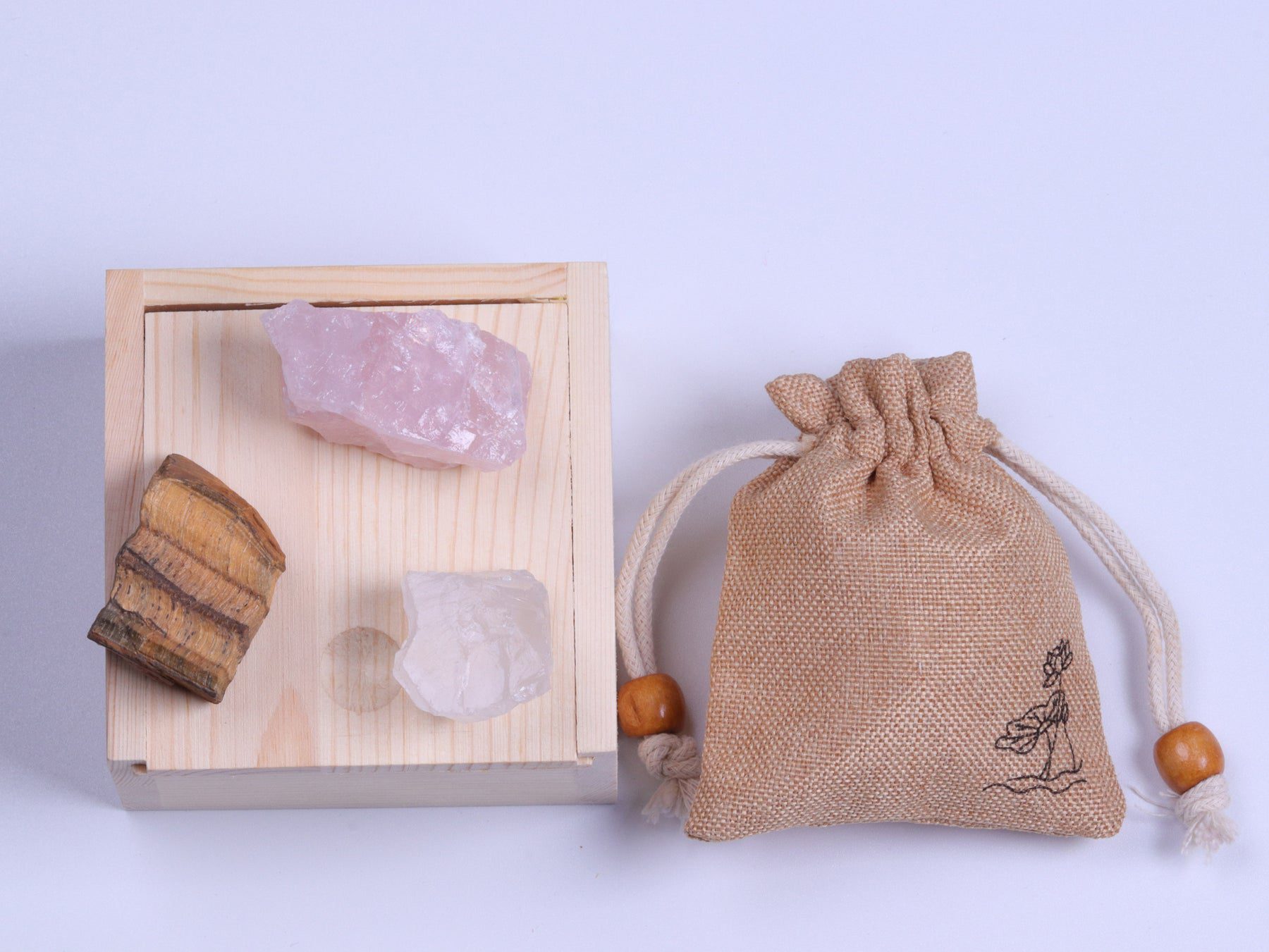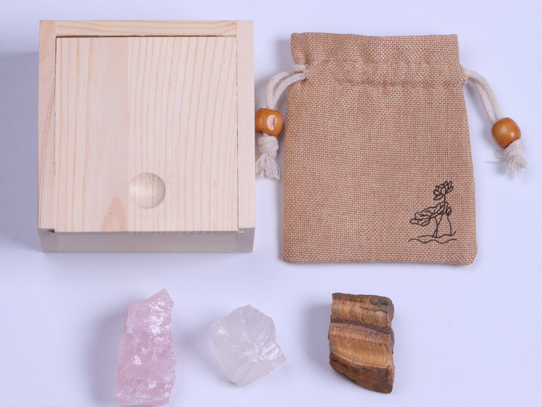 The first stone is the Tiger Eye, it can give you a cloak of pure protection. The second stone is Rose Quartz a stone of love that can melt even the hardest of hearts, and the last stone is Clear Quartz which is believed to carry clearness to you who convey it.
