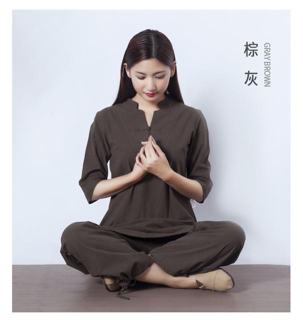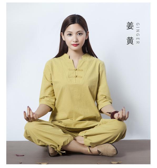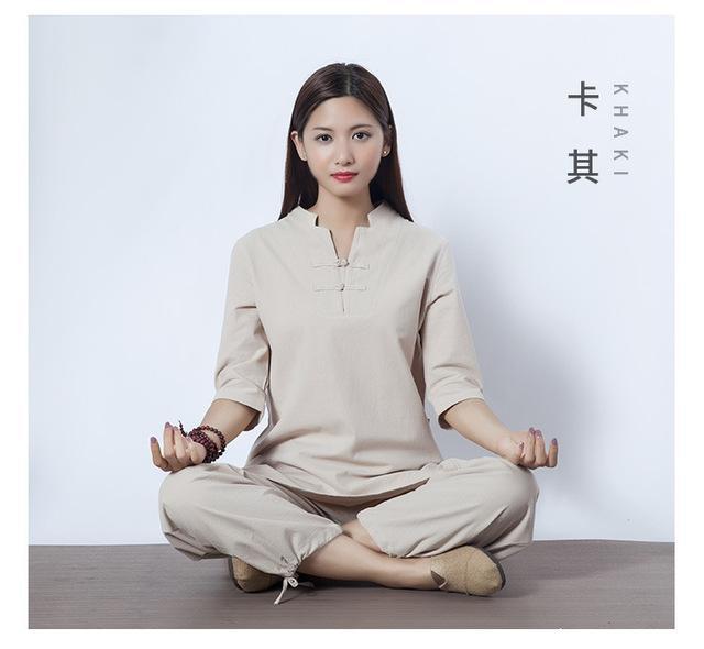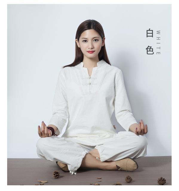 Tight-fitting clothes may prevent you from breathing comfortably and meditating so this Comfortable Womens Cotton Meditation 2-Piece Set is ideal for meditation because they will be comfortable no matter what position you meditate in.