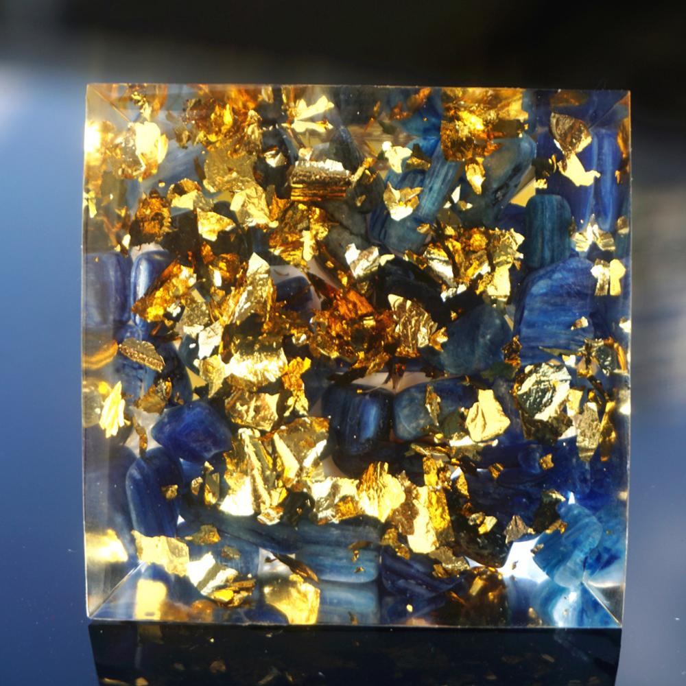 Material:Yellow Agate, Kyanite, Gold foil, Resin