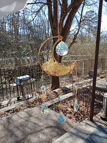I enjoy the daily prism of rainbow reflections around my kitchen and beyond when the morning Sun catches the crystals in this piece. It s a beauty to behold, and everyone comments on its appealing rainbows! A great gift for my house, and the Citrine is a wonderful Crystal to draw in the Sun.