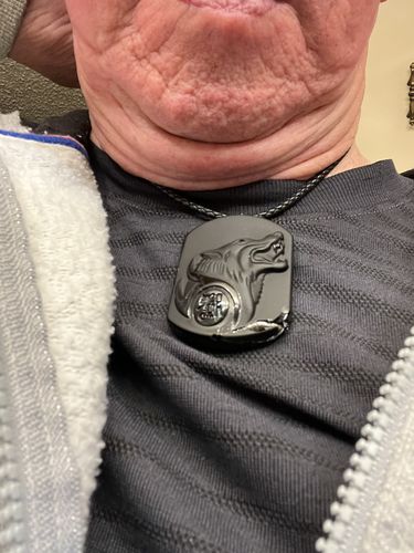 Love the Wolf pendant. Very impressive..one wish I would have is the hole be bigger so I can wear it with different necklaces..
